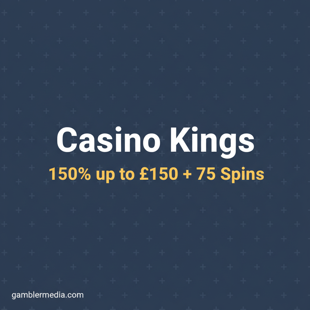 gamblermedia.comHere's the scoop on Casino Kings's welcome offer: 150% up to £150 + 75 Spins for anyone registering today. Worth a look.