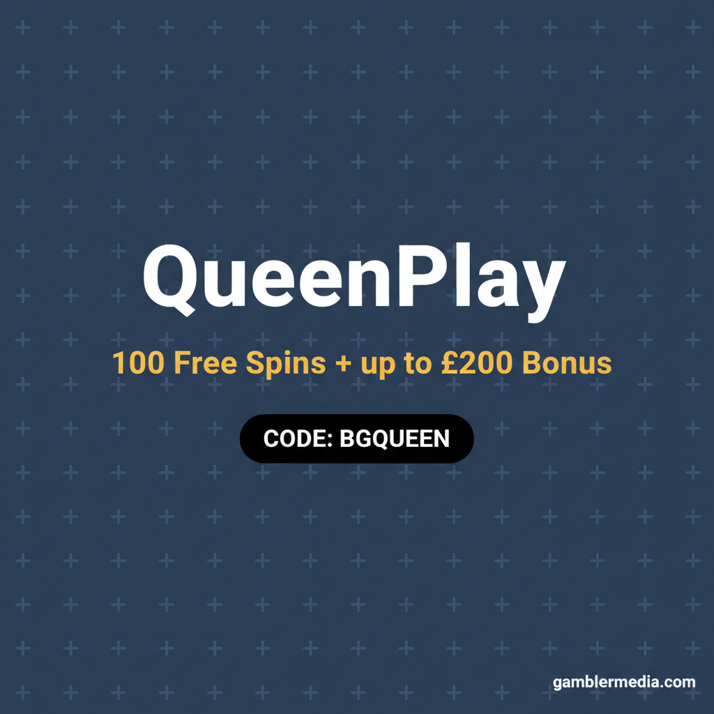 The QueenPlay bonus code is BGQUEEN. Enter this code in the bonus code field during registration to unlock the 100 Free Spins + up to £200 Bonus welcome offer. No separate activation required – your bonus will be credited automatically upon qualifying deposit.